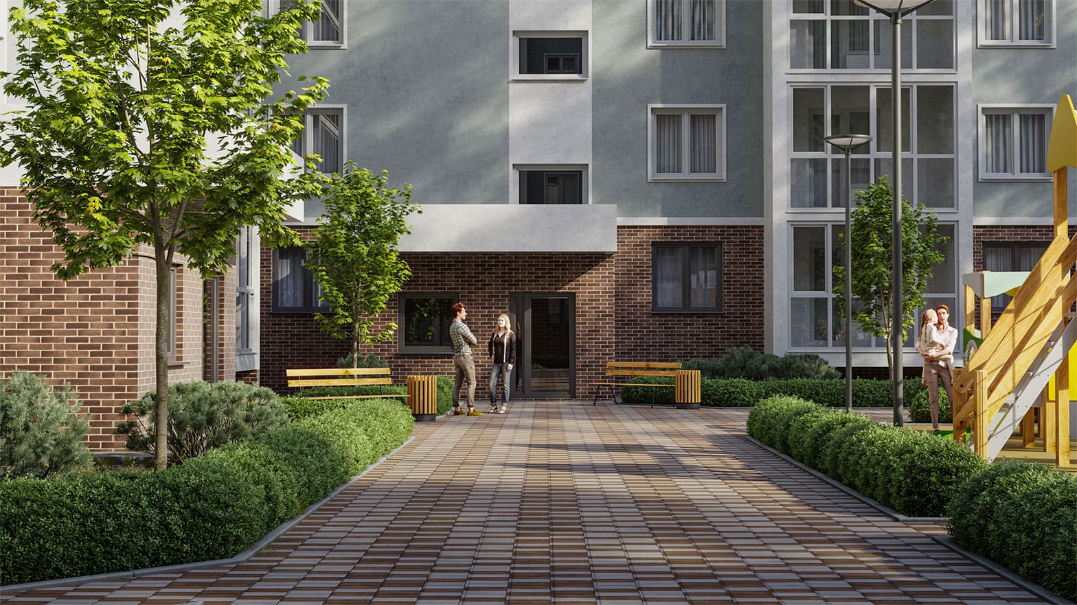 Находиться во дворе домов “Seven” приятно, благодаря большому количеству зеленых насаждений. Именно они отвечают за благоприятный климат внутри комплекса.