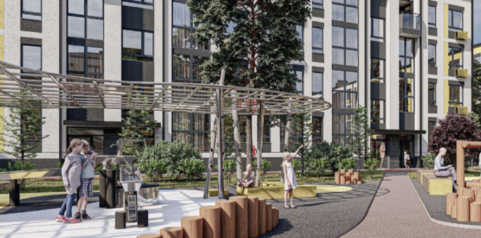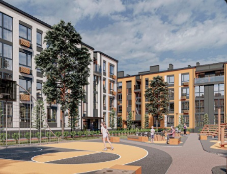 Территория вокруг домов утопает в зелени и благоухании оригинальных ландшафтных решений. Ультрасовременные детские и спортивные площадки, а также зоны для отдыха приглашают провести время на свежем воздухе в кругу семьи и друзей.