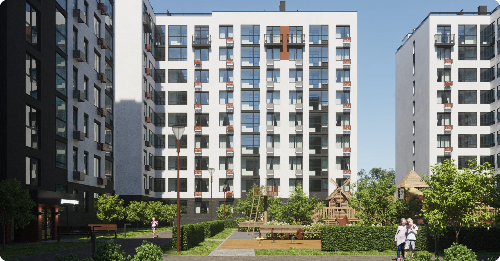 Представляем вашему вниманию жилой комплекс комфорт-класса «Включи», расположенный в экологически чистом, окруженном зеленью, тихом и спокойном районе с хорошо развитой инфраструктурой всего в 3 км от Калининграда. Здесь вы сможете насладиться всеми преимуществами загородной жизни, не отрываясь от большого города. Двор комплекса представляет собой изолированную зону для проезда автомобилей. Парковочные места и гостевые парковки уместно вынесены за пределы территории ЖК и расположены с наружной стороны жилых домов. Такой подход создает безопасные и комфортные условия для жителей, поскольку автомобили не мешают движению пешеходов внутри комплекса. В пространстве между домами разместилась универсальная спортивная площадка со специальным покрытием для командных видов спорта. Уникальность данной площадки в том, что она оптимально подойдет как для игры в баскетбол и теннис, так и для игры в мини-футбол.