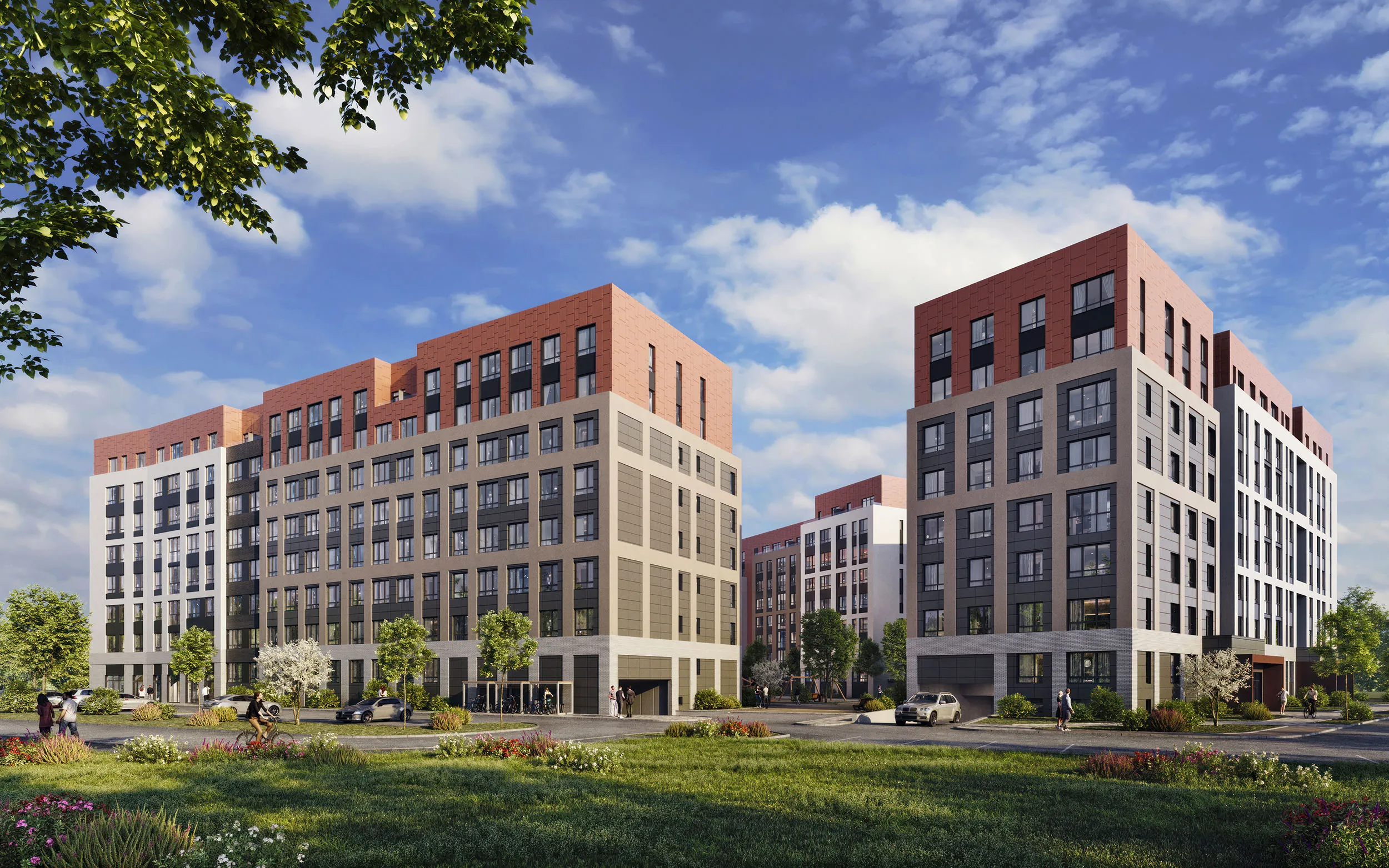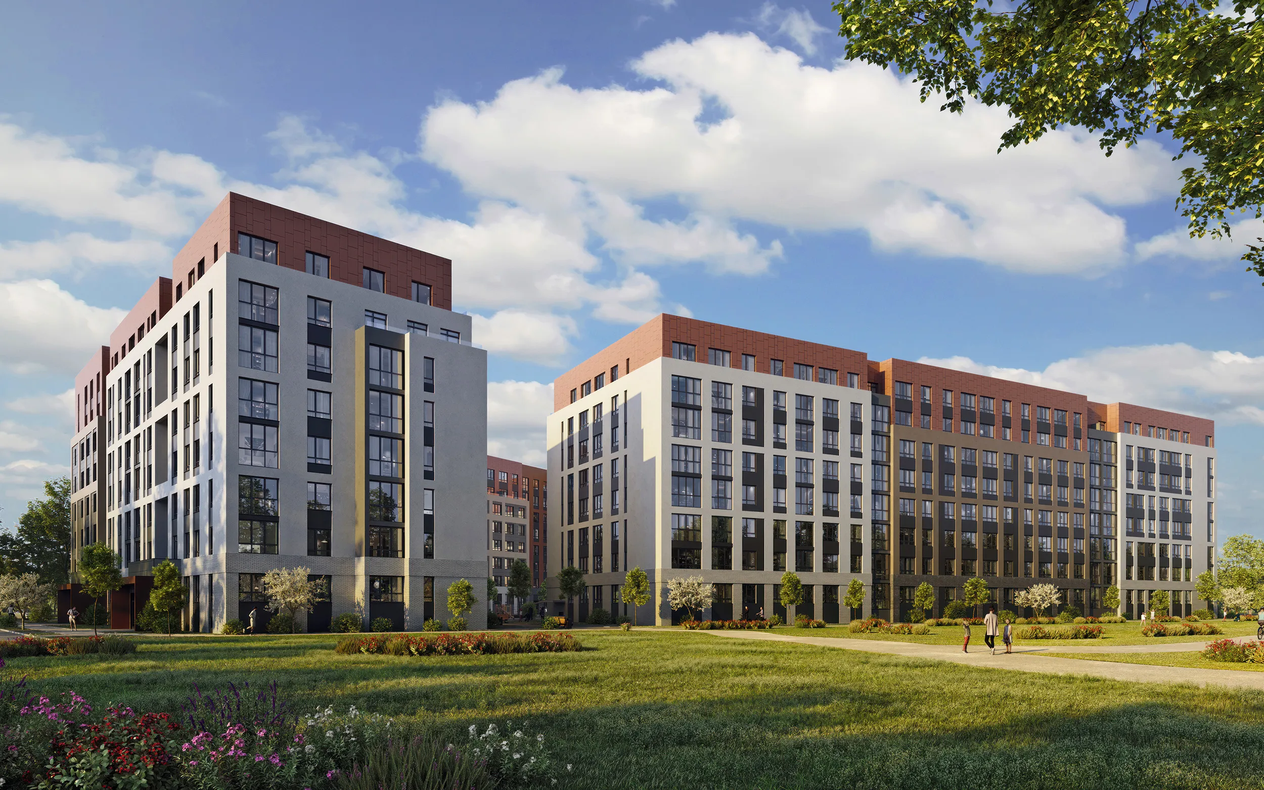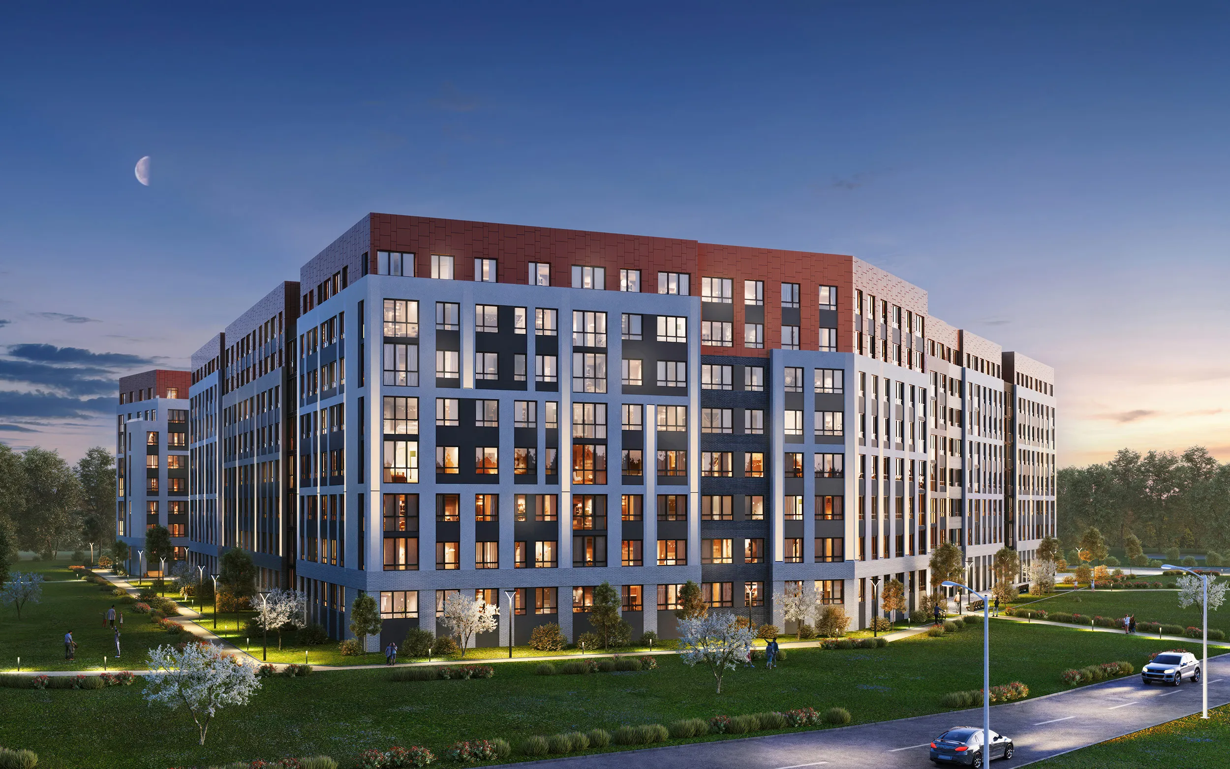Удивительное место, где комфорт соединяется с природой, инфраструктура обеспечивает всем необходимым, а логистика экономит время. Прямые линии, стремящиеся вверх, панорамное остекление, в котором отражаются лучи восходящего солнца и огни заката. Лучистая геометрия и несовершенство форм, минималистичный дизайн фасадов.