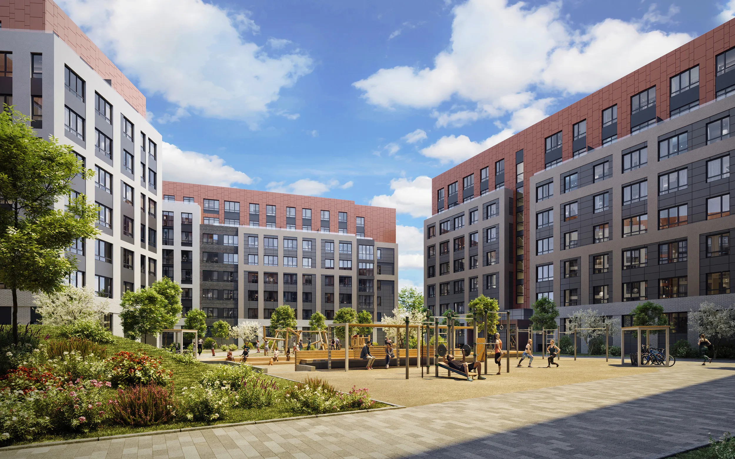 - детские площадки направленные на развитие детей, ландшафтный дизайн на дворовых территориях